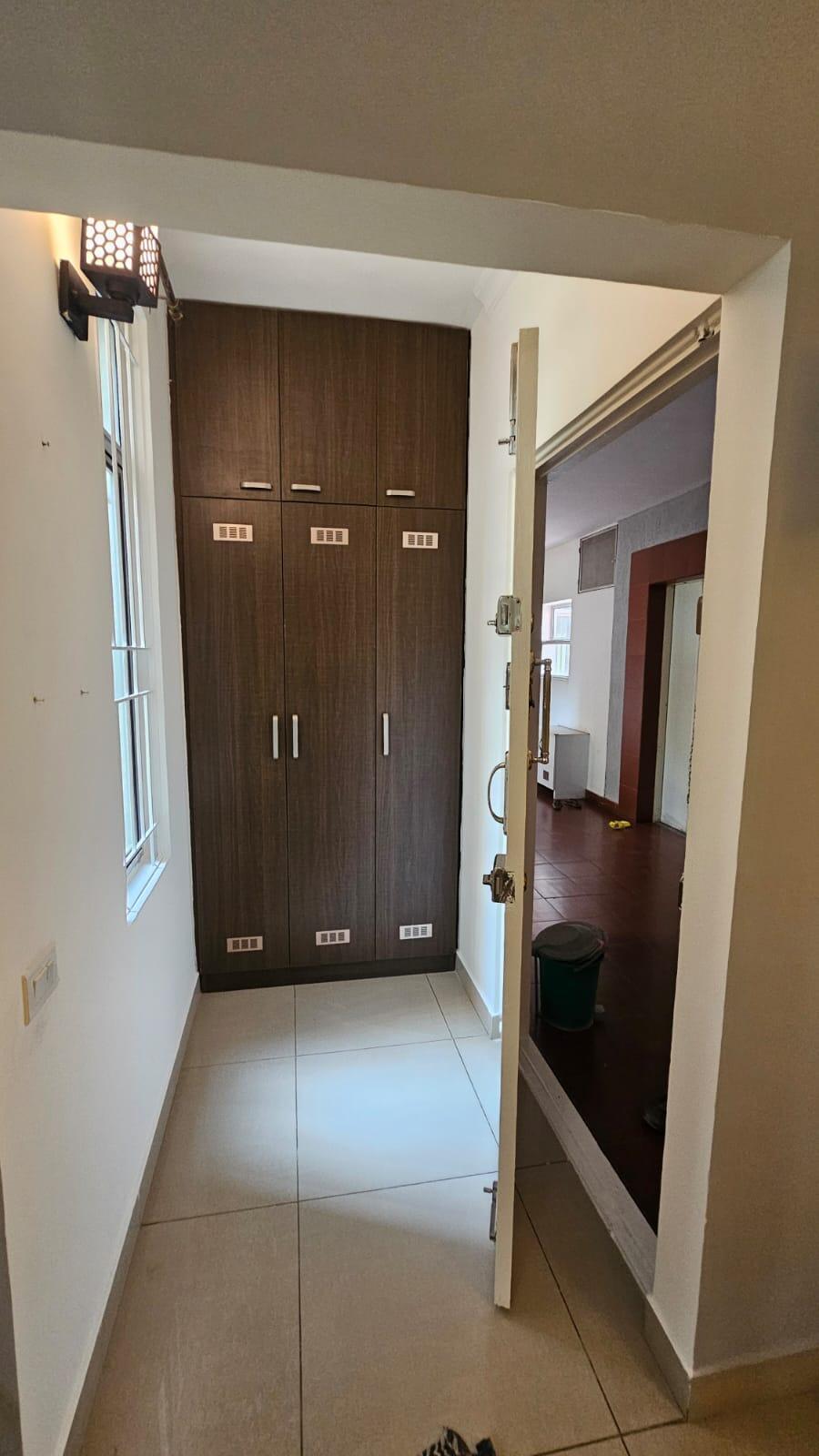 It's a corner unit, the walls don't share with any other property, garden and tennis court view. The parking is extra spacious and can accomodate two cars. The interior has been done tastefully with modular kitchen, chimney, fans in all rooms with a tv unit in each room and living area. The balcony is grilled